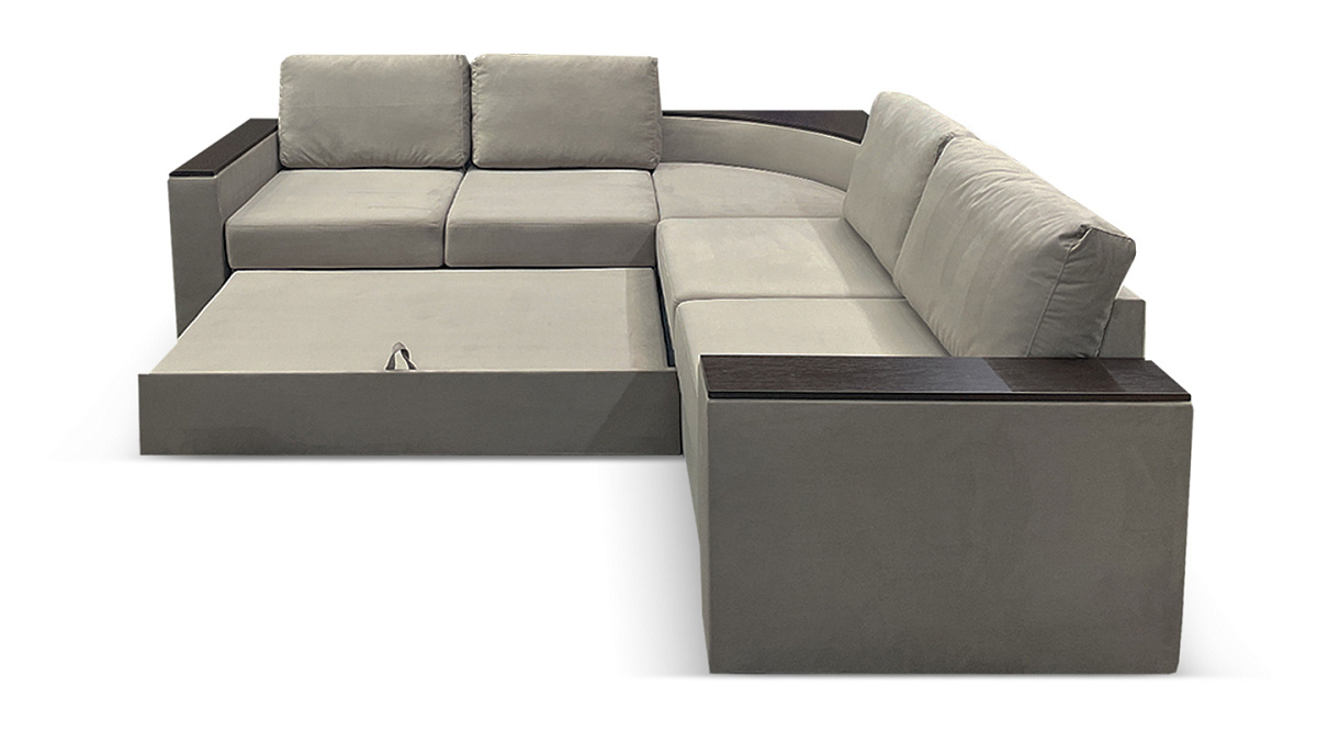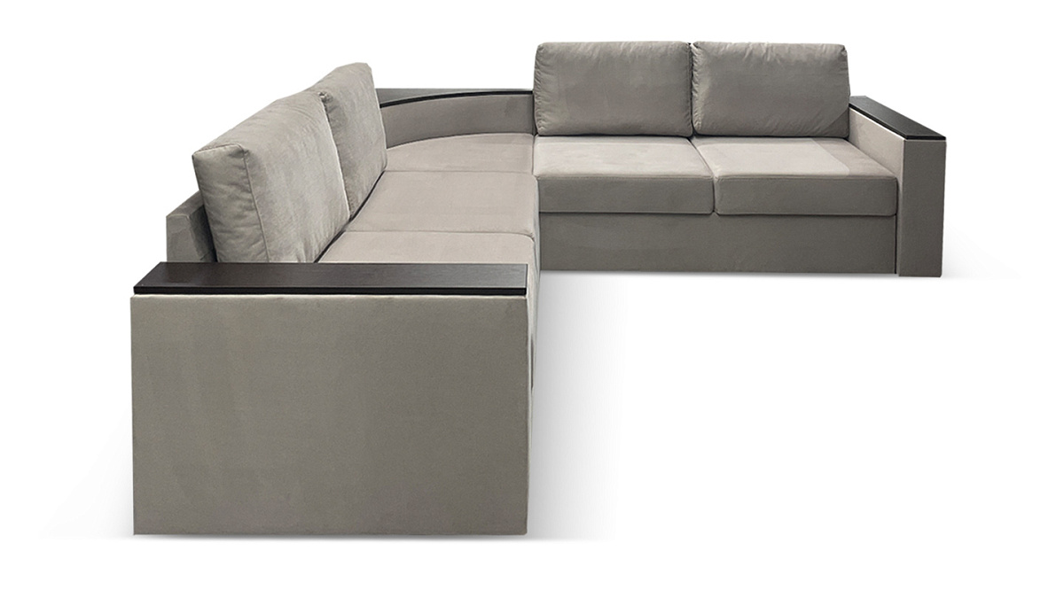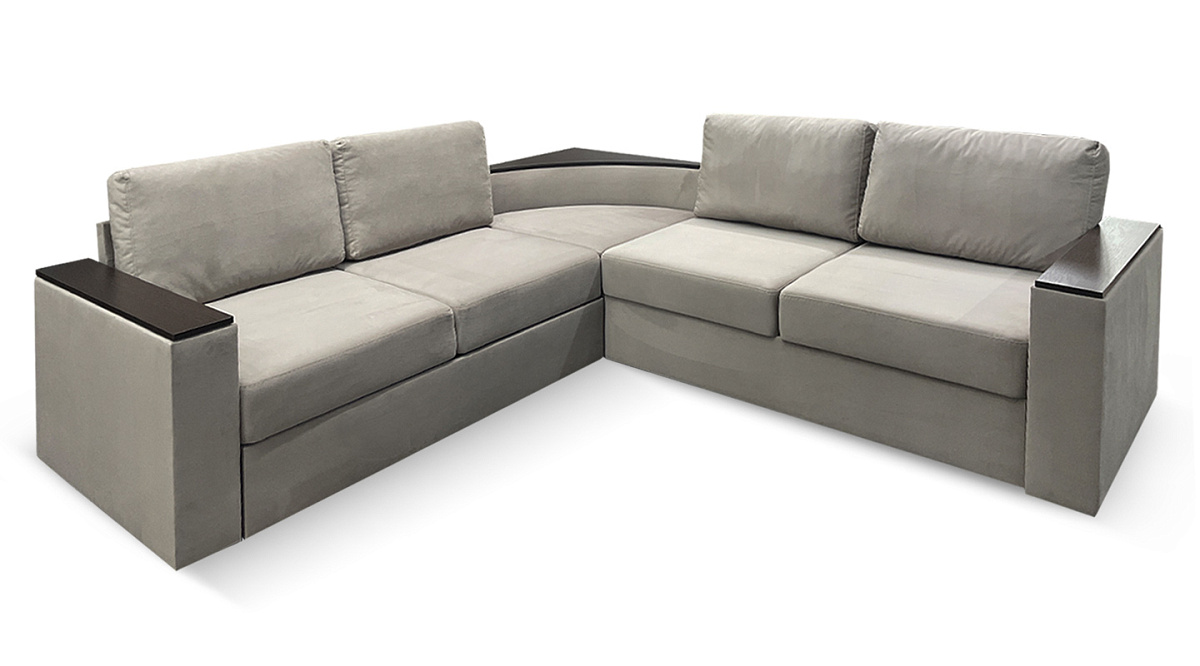 “Фоборг” - это большой угловой диван со встроенным столиком в центре и деревянными вставками в подлокотниках. Всё это - дополнительный функционал, благодаря которому можно сократить число предметов в комнате, обойтись, например, без тумбочки. На подлокотник можно поставить книжку или положить книгу, пульт, телефон. Столик в угловом секторе можно использовать как в декоративных целях, украсив сувенирами, так и в практических, используя как полку для книг или небольшой настольной лампы.