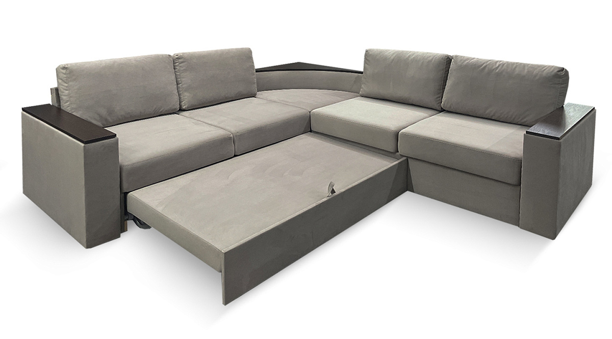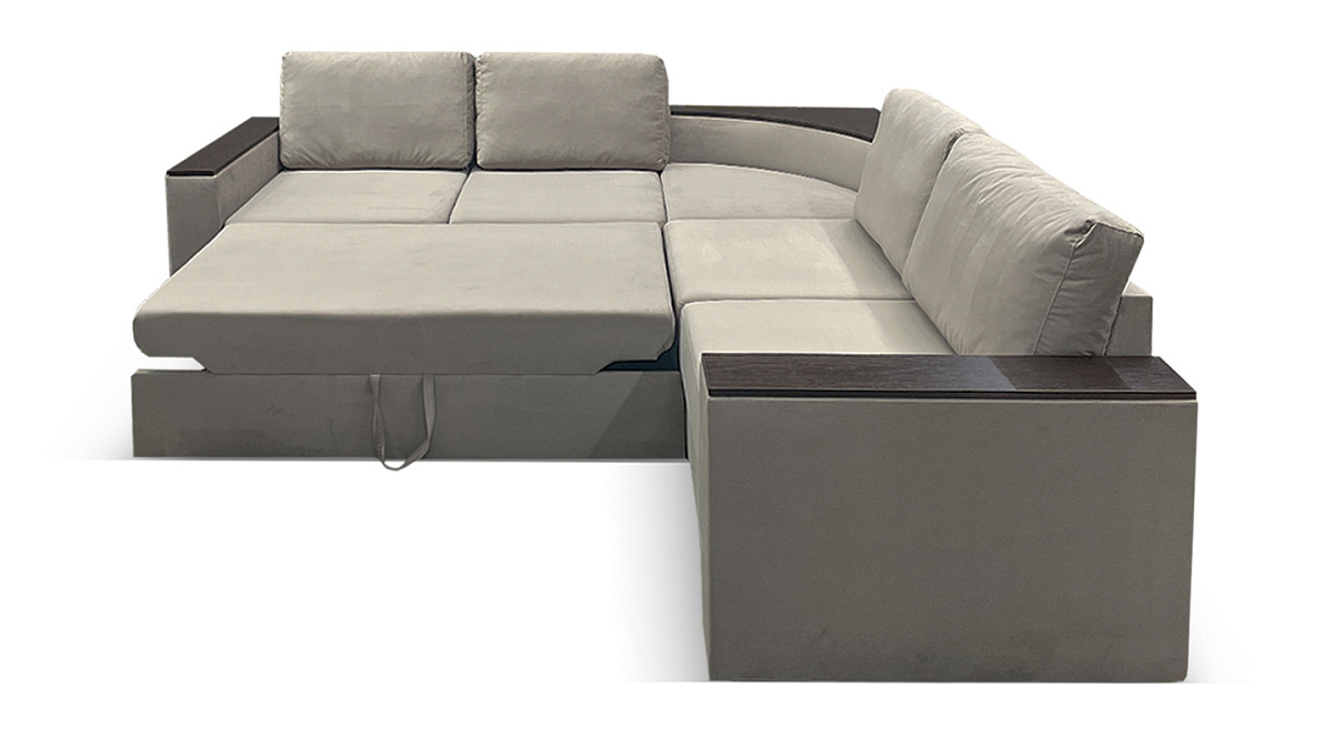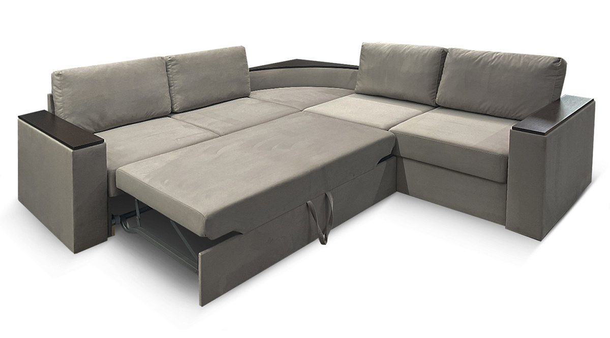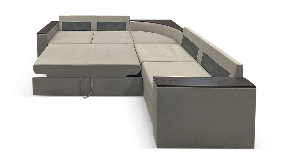 Оптимальная глубина дивана делает его очень удобным местом для посиделок с семьей или гостями. Если разложить диван - получится просторная двуспальная кровать. Делается это за несколько секунд, благодаря механизму трансформации “дельфин”. Скрытая часть дивана полностью выдвигается и приподнимается вверх с помощью потайного ремешка. Две части дивана выравниваются, образуя ровное спальное место.