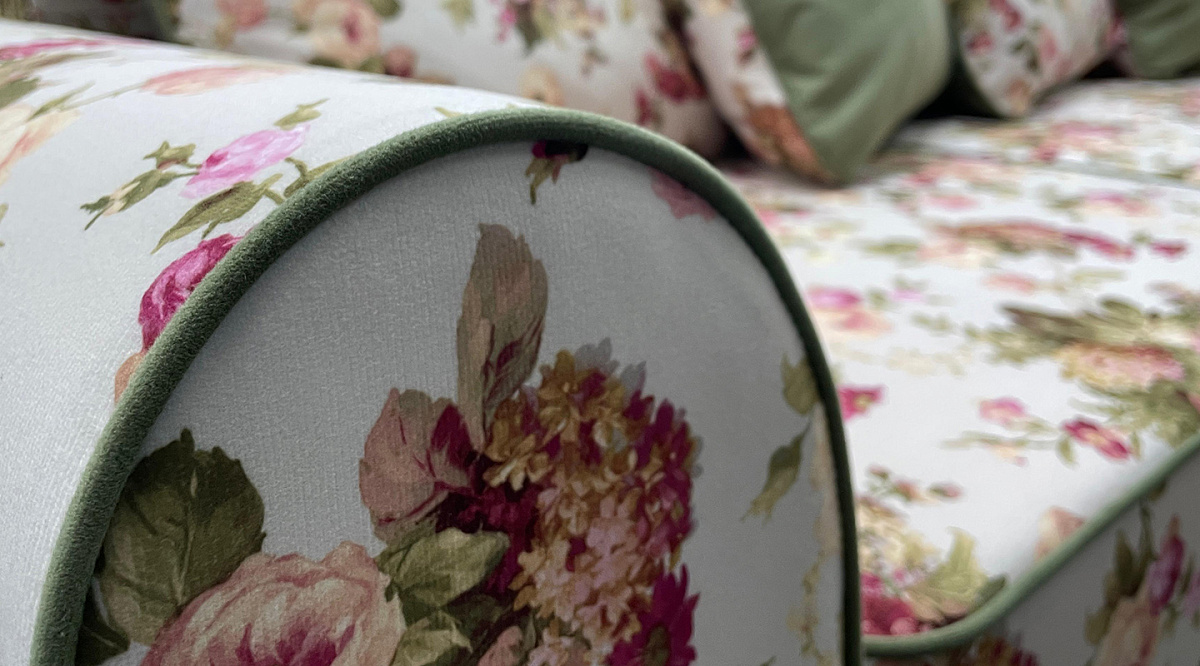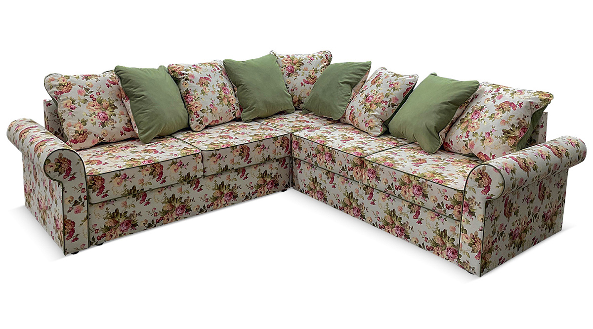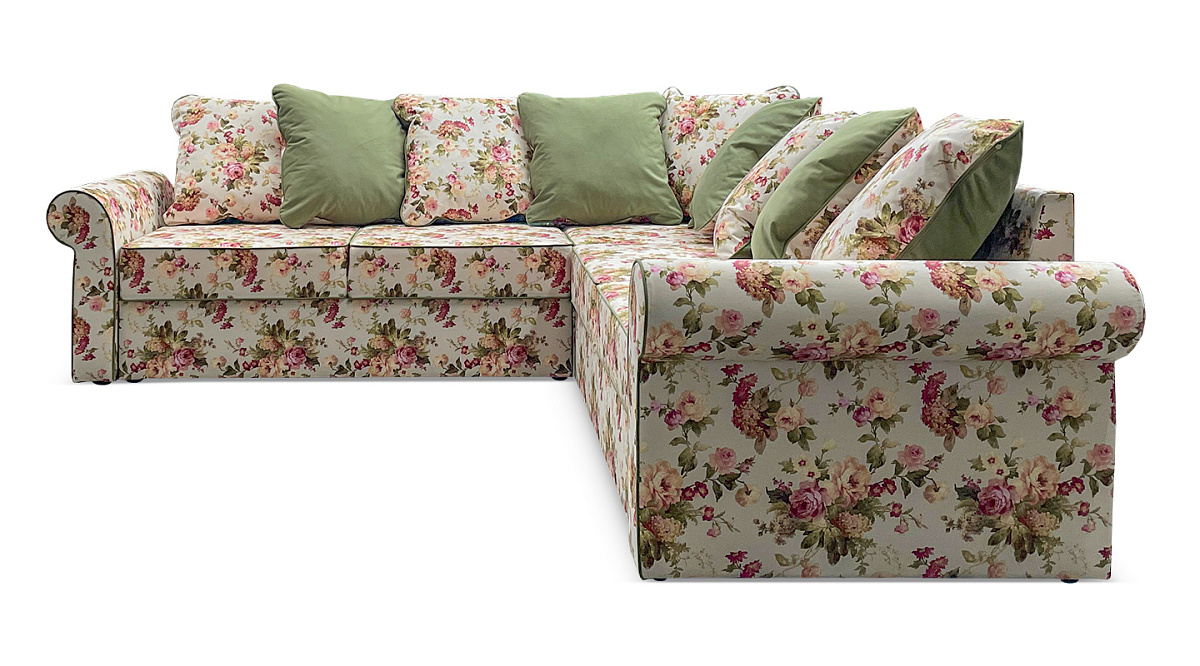 Диван в стиле прованс «Халланд» – отличается большими размерами, но при этом не выглядит массивно. Наоборот – нежный принт в виде цветов на пастельном фоне делает мебель воздушной и невесомой. Округлые подлокотники придают дивану особый ретро-шарм, а многочисленные контрастные подушки только дополняют общую картину.