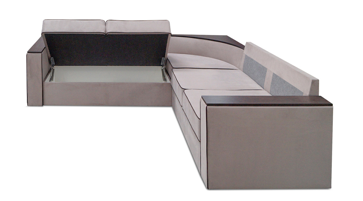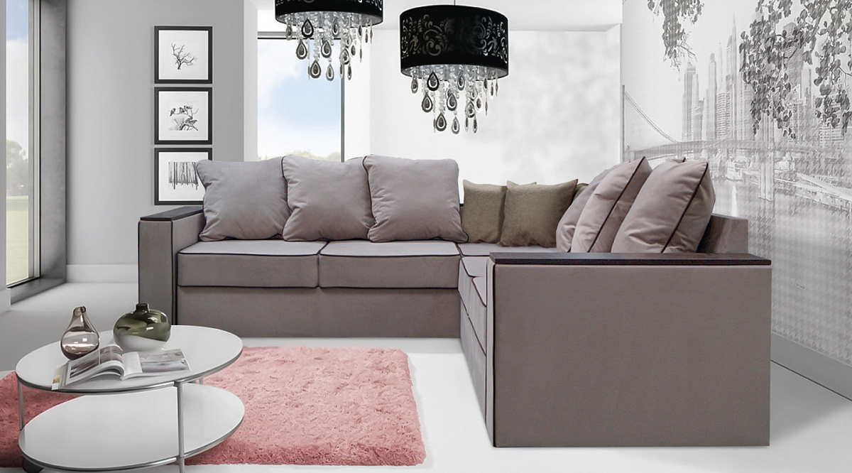 Угловой диван с полкой в углу Кируна Бежевый / Коричневый