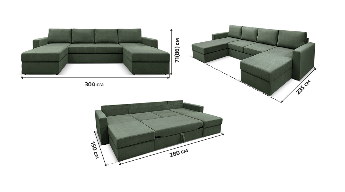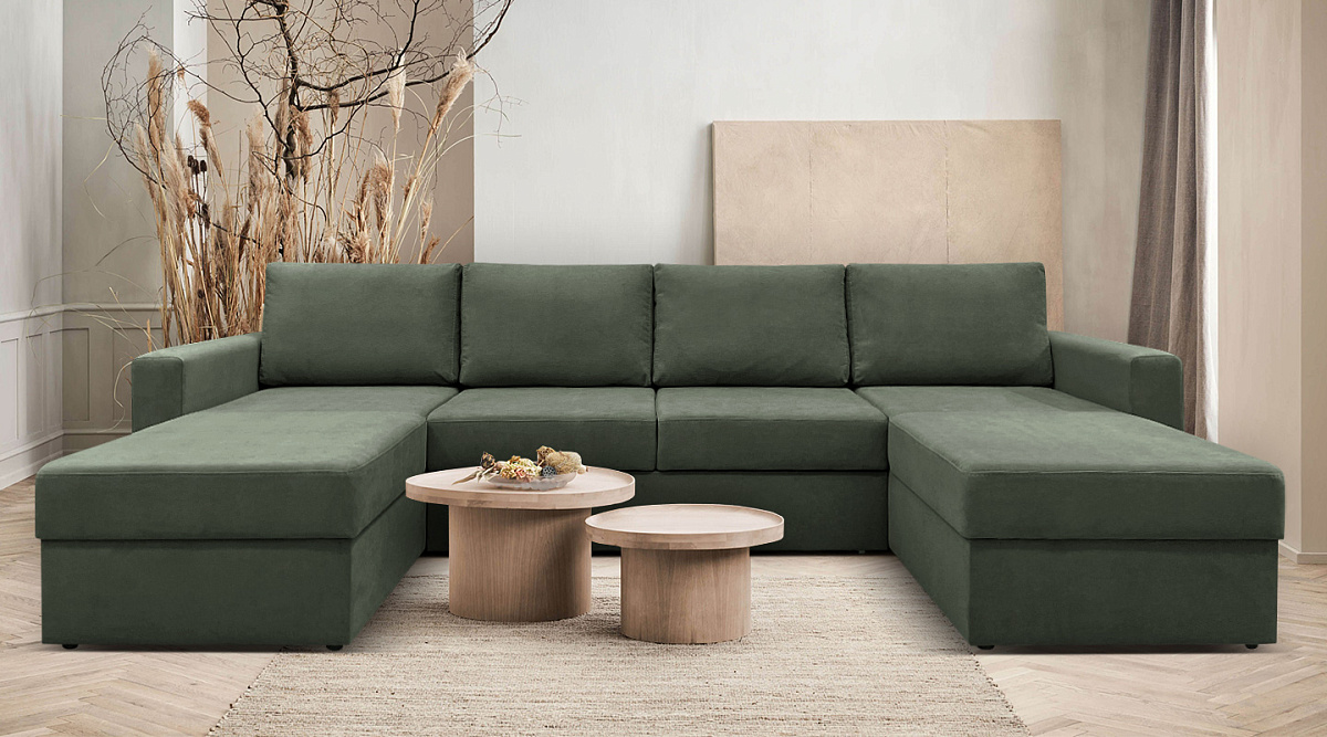 П-образный диван Карлстад Зеленый Велюр