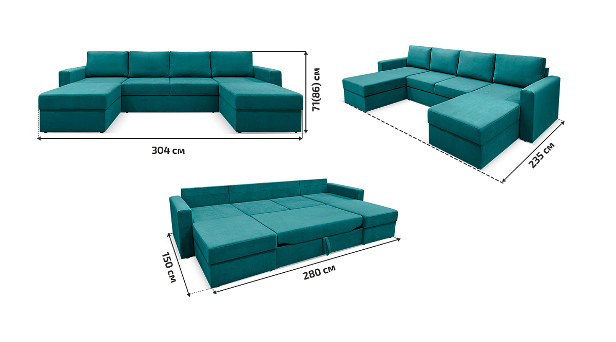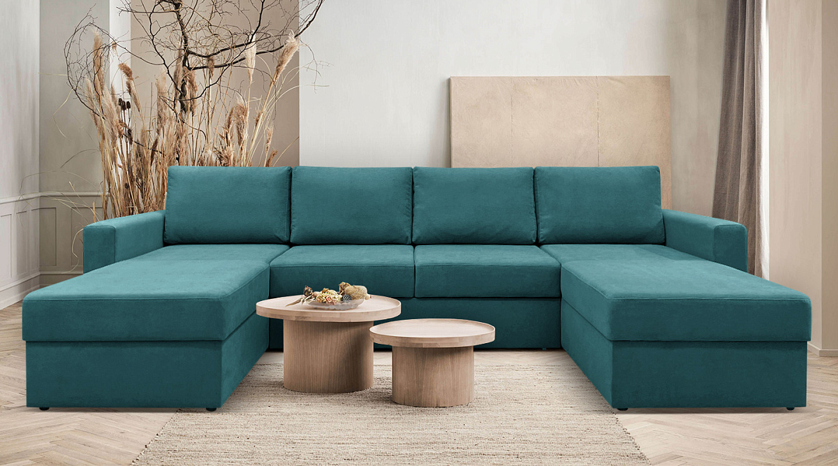 П-образный диван Карлстад Бирюзовый Велюр