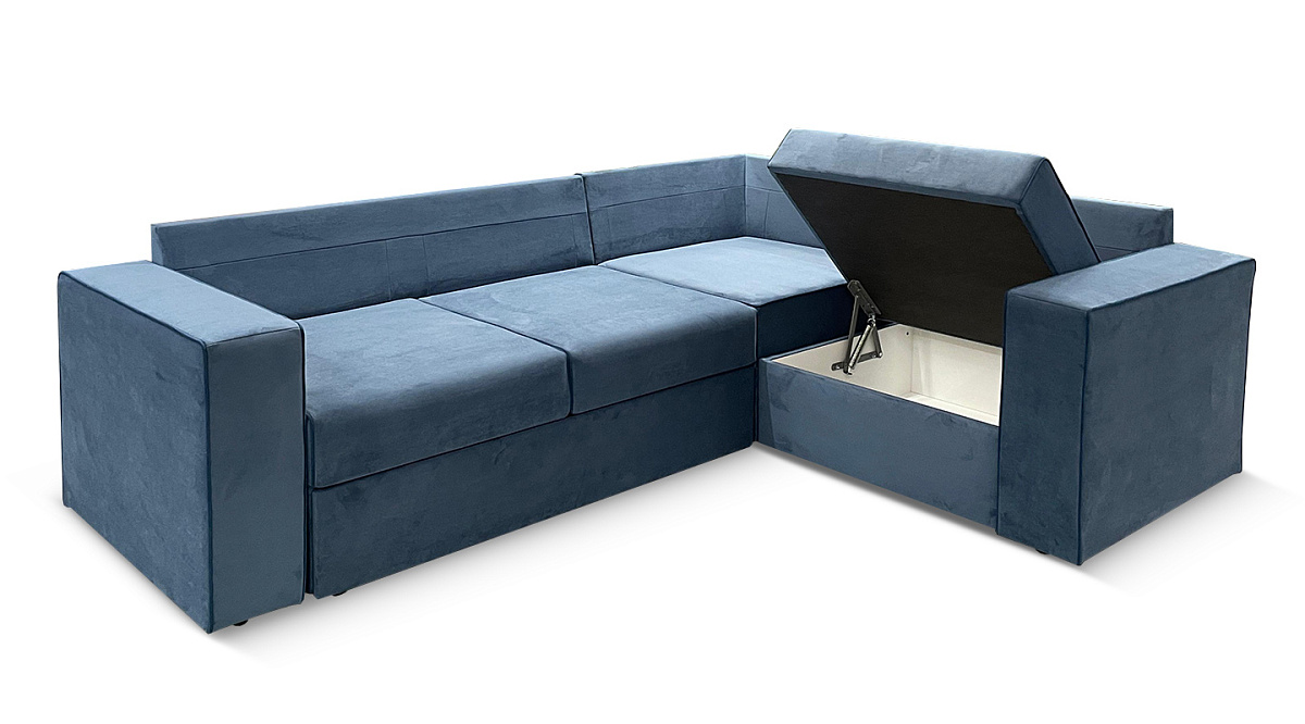 Используя простой в обращении раскладной механизм "дельфин", можно за пару секунд превратить диван в большую кровать. Диван дополнен коробом для одежды, белья и прочих вещей.