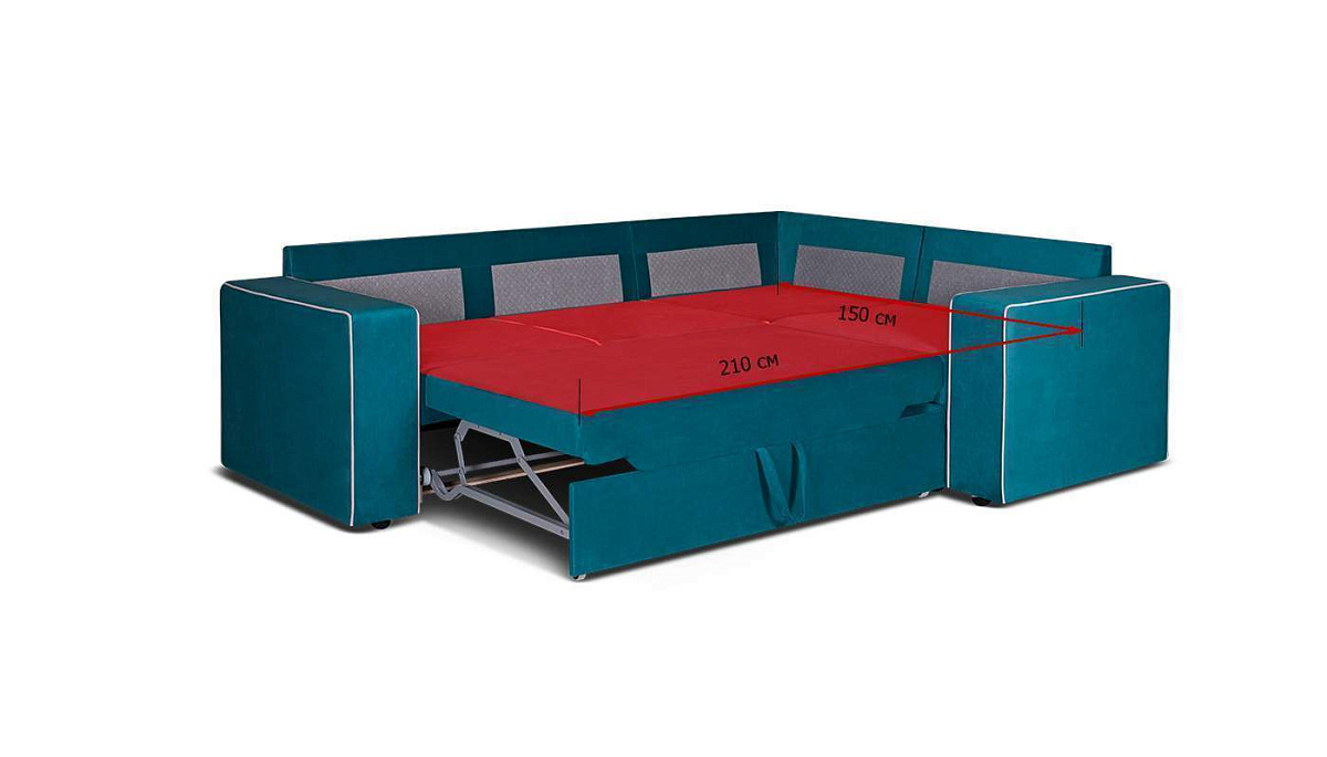 Используя простой в обращении раскладной механизм "дельфин", можно за пару секунд превратить диван в большую кровать. Диван дополнен коробом для одежды, белья и прочих вещей.